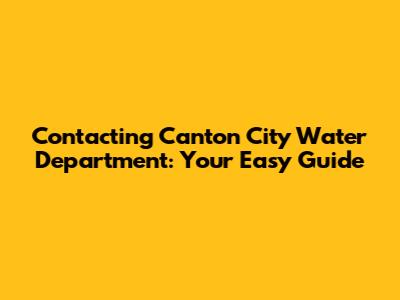 Contact Canton City Water Department: Your Easy Guide