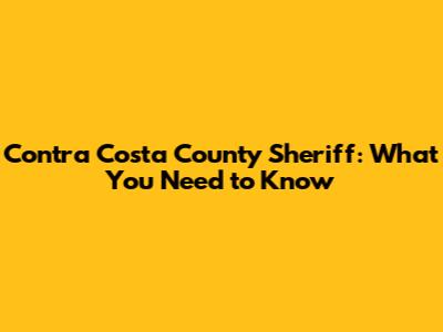 Contra Costa County Sheriff: What You Need To Know