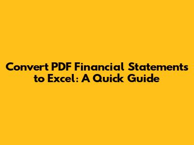 Convert PDF Financial Statements To Excel: A Quick Guide