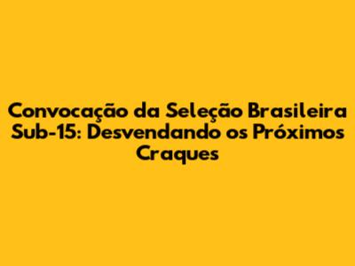 O Impacto das Competições: Onde a Seleção Sub-15 Mostra Seu Valor?