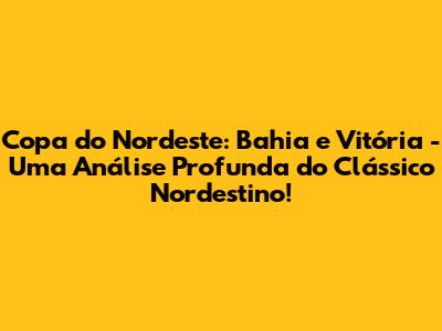 Olá, pessoal! Se você é fã de futebol, especialmente do futebol nordestino, prepare-se para mergulhar em um universo de paixão, rivalidade e muita história. Vamos falar sobre a Copa do Nordeste, um dos torneios mais vibrantes e emocionantes do Brasil, e, claro, sobre os gigantes da Bahia: Bahia e Vitória. Preparam-se para uma viagem completa pelo clássico que move multidões! Neste artigo, vamos explorar cada detalhe, desde a história dos clubes até as expectativas para as próximas temporadas. Pegue sua camisa, prepare a pipoca e vamos nessa!