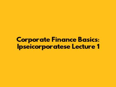Corporate Finance Basics: Ipseicorporatese Lecture 1
