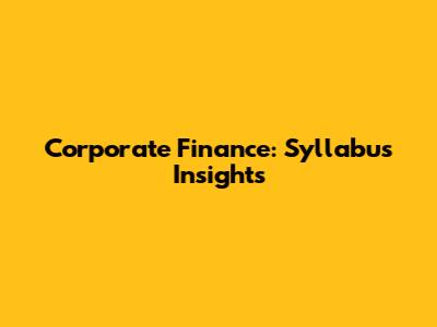 Corporate Finance: Syllabus Insights