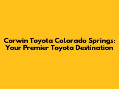 Corwin Toyota Colorado Springs: Your Local Toyota Experts