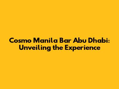 Hey guys! Ever wondered what the buzz is about Cosmo Manila Bar in Abu Dhabi? Well, you're in the right place! We're diving deep into the Cosmo Manila Bar Abu Dhabi experience, complete with photos, a breakdown of the vibe, and everything you need to know before you go. This place is a hotspot, and trust me, you don't want to miss out on the fun. From the lively atmosphere to the amazing music and drinks, Cosmo Manila Bar is a must-visit for anyone looking for a great night out in Abu Dhabi. We'll explore what makes this bar so popular, offering insights into its unique charm and why it's a favorite among both locals and tourists.