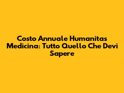Costo Annuale Humanitas Medicina: Guida E Consigli