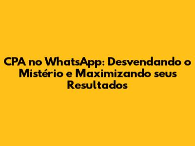 CPA No WhatsApp: Entenda O Significado E Como Usar