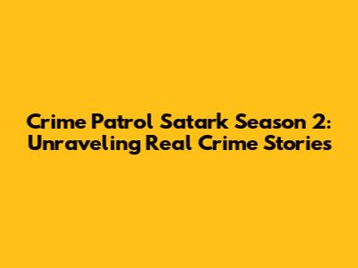 Hey guys! If you're into gripping tales of crime and the relentless pursuit of justice, then Crime Patrol Satark Season 2 is definitely something you should check out. This season takes you deep into the heart of real-life criminal investigations, showcasing how the Indian police force works tirelessly to solve complex cases. It’s not just about the crime itself, but the intricate details of the investigation, the psychological games played by criminals, and the unwavering dedication of the officers. We’re talking about cases that will keep you on the edge of your seat, making you think, and often, leaving you with a profound respect for the men and women in uniform. So, buckle up as we dive into what made Crime Patrol Satark Season 2 a must-watch for fans of true crime.
