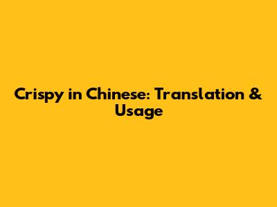 Crispy In Chinese: Translation & Usage