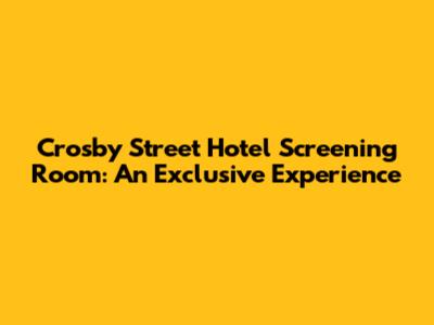 Hey guys! Ever wondered where to catch a flick in style, surrounded by elegance and top-notch comfort? Let’s dive into the world of the Crosby Street Hotel Screening Room, a hidden gem in the heart of New York City. This isn't just any cinema; it's an experience that blends luxury with the magic of movies. Whether you’re a film buff, a celebrity, or just someone looking for a unique way to spend an evening, the Crosby Street Hotel's screening room is definitely worth checking out.