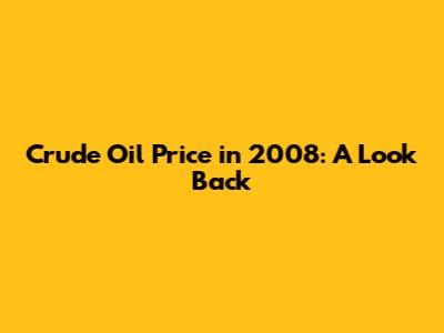 Crude Oil Price In 2008: A Look Back