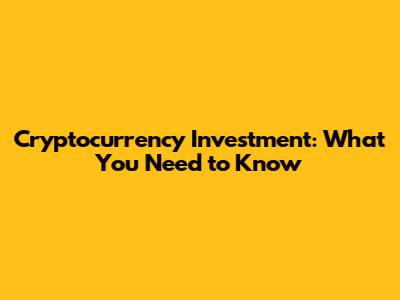 Cryptocurrency Investment: What You Need To Know