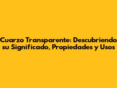 ¡Hola a todos! Hoy vamos a sumergirnos en el fascinante mundo del cuarzo transparente, también conocido como cristal de roca. Este cristal es uno de los más populares y versátiles en el mundo de la gemología y la espiritualidad. ¿Están listos para descubrir su significado, propiedades y cómo pueden aprovechar todo su potencial? ¡Vamos allá, amigos!