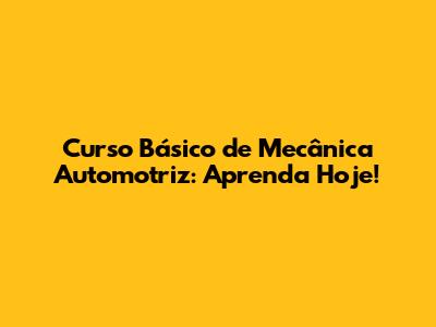 Curso Básico De Mecânica Automotriz: Aprenda Hoje!