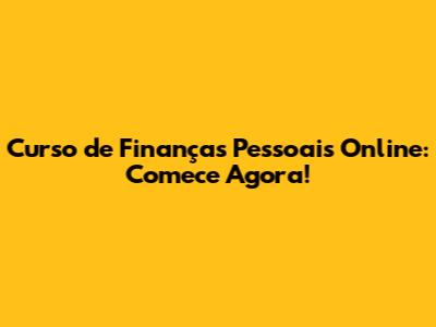 Curso De Finanças Pessoais Online: Comece Agora!