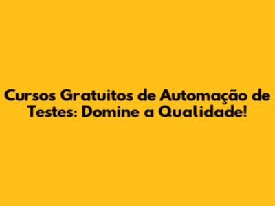 Cursos Gratuitos De Automação De Testes: Domine A Qualidade!