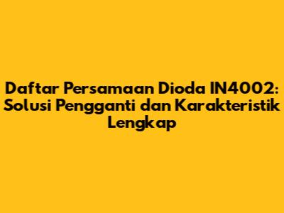 Dioda IN4002 adalah komponen elektronik yang sangat umum dan serbaguna. Jika kalian sering berkecimpung di dunia elektronika, pasti sudah tidak asing lagi dengan dioda ini. Tapi, gimana kalau dioda IN4002 yang kalian punya rusak atau susah dicari? Nah, jangan khawatir, karena artikel ini akan membahas persamaan dioda IN4002, lengkap dengan pengganti dioda IN4002, karakteristik dioda IN4002, dan spesifikasi dioda IN4002. Jadi, simak terus ya, guys!
