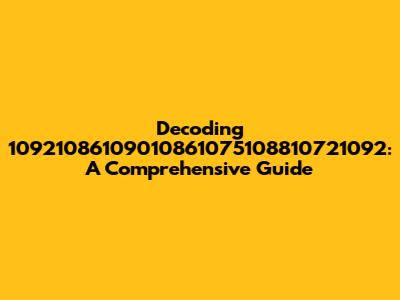Decoding 10921086109010861075108810721092: A Comprehensive Guide