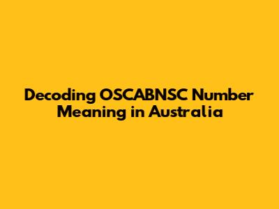 Decoding OSCABNSC Number Meaning In Australia