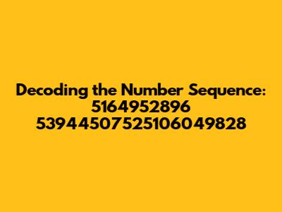 When faced with a number sequence like 5164952896 53944507525106049828, several interpretations come to mind. Here are a few possibilities to consider:
