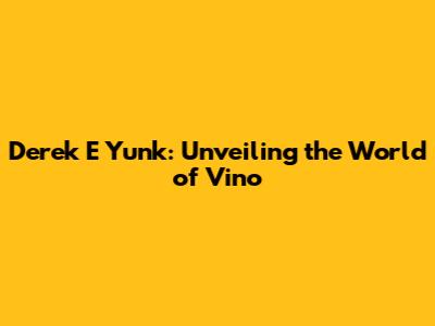 Derek E Yunk: Unveiling The World Of Vino