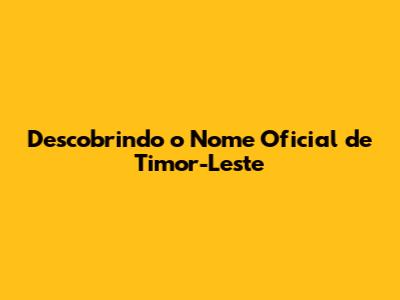 Descobrindo O Nome Oficial De Timor-Leste