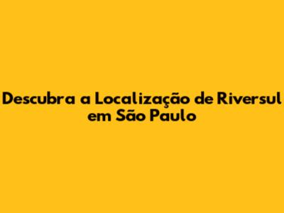 Descubra A Localização De Riversul Em São Paulo