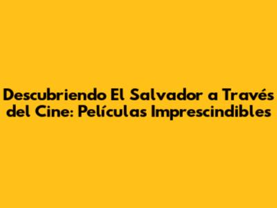 Descubriendo El Salvador A Través Del Cine: Películas Imprescindibles