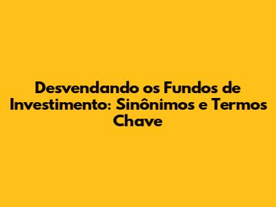 Desvendando Os Fundos De Investimento: Sinônimos E Termos Chave