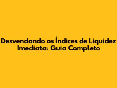 Desvendando Os Índices De Liquidez Imediata: Guia Completo