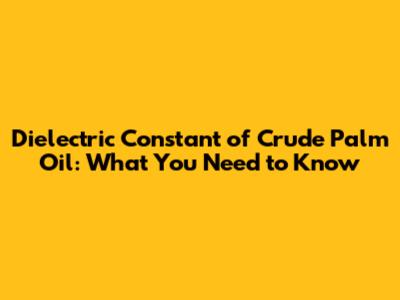 Dielectric Constant Of Crude Palm Oil: What You Need To Know
