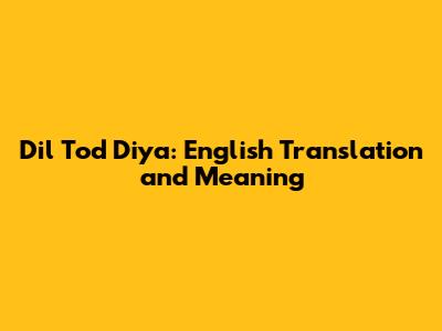 Dil Tod Diya: English Translation And Meaning