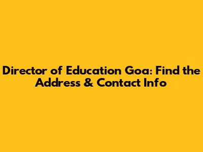 Director Of Education Goa: Find The Address & Contact Info