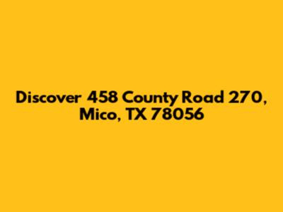 Hey guys! Ever wondered what makes a specific piece of real estate stand out? Well, today we're diving deep into a property that's generating some buzz: 458 County Road 270 in Mico, Texas, zip code 78056. This isn't just any address; it's a gateway to understanding a particular segment of the Texas market. We're going to explore what makes this location, and properties like it, so appealing. From its geographical features to the lifestyle it offers, we'll cover all the bases. If you're a potential buyer, a curious local, or just someone interested in Texas real estate, stick around! We're going to break down why a specific address like 458 County Road 270 can tell such a compelling story about its surroundings and the opportunities it holds. Get ready to discover the unique charm and potential of this Mico, TX location. This article is designed to give you a comprehensive overview, making it easier to understand the value and appeal of this particular property. So, let's get started on this exciting journey of exploration!
