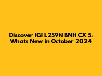 Discover IGI L259N BNH CX 5: What's New In October 2024