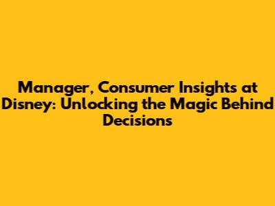 Hey guys! Ever wondered what it takes to understand what makes the Disney magic tick for millions of fans worldwide? Well, you're in luck, because we're diving deep into the world of a Manager, Consumer Insights at a company synonymous with enchantment – Disney. This isn't just about crunching numbers; it's about becoming a detective of desires, a strategist of satisfaction, and a pivotal player in shaping the experiences that bring joy to people of all ages. If you're passionate about understanding consumer behavior, possess a keen analytical mind, and dream of working for a brand that touches hearts globally, then this role might just be your fairy tale career opportunity. We'll explore the nitty-gritty of what this job entails, the skills you'll need to shine, and why it’s such a thrilling gig. Get ready to uncover the secrets behind Disney's enduring appeal and how consumer insights are the hidden pixie dust that makes it all happen.