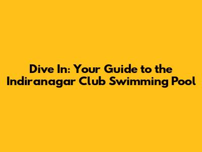 Dive In: Your Guide To The Indiranagar Club Swimming Pool