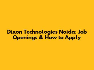Dixon Technologies Noida: Job Openings & How To Apply