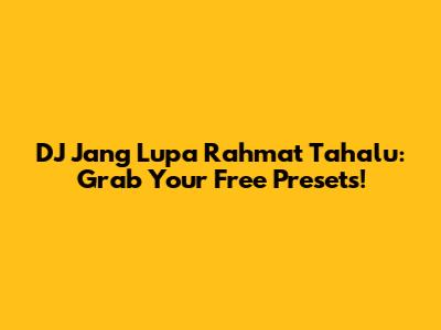DJ Jang Lupa Rahmat Tahalu: Free Presets!
