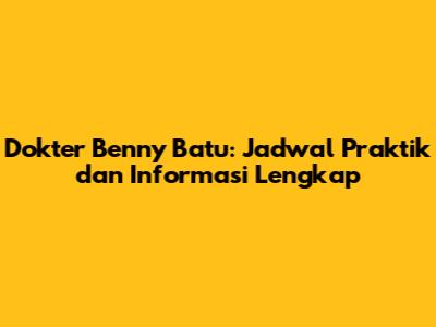 Dokter Benny Batu: Jadwal Praktik Dan Informasi Lengkap