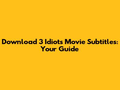 Download 3 Idiots Movie Subtitles: Your Guide
