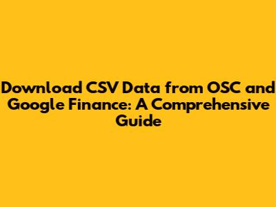 Hey guys! Ever wanted to dive deep into financial data, but felt lost in a sea of numbers and spreadsheets? You're not alone! Getting your hands on the right data is crucial, whether you're a seasoned investor, a finance student, or just someone curious about the market. This guide will walk you through how to download CSV data from two powerful sources: OSC (Ontario Securities Commission) and Google Finance. We'll break it down step-by-step, making sure you can easily access the information you need. Let's get started!