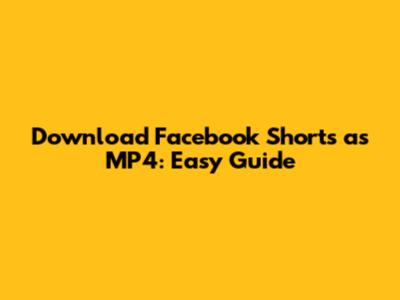 Download Facebook Shorts As MP4: Easy Guide