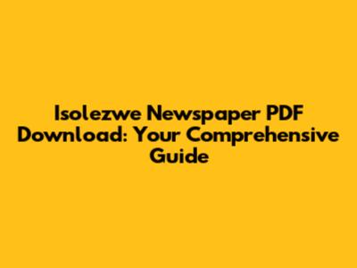 Hey guys! Are you looking to download the Isolezwe newspaper in PDF format? You've landed in the right spot. In this guide, we'll walk you through everything you need to know to access Isolezwe, understand its significance, and grab those PDF versions without any hassle. Let's dive right in!