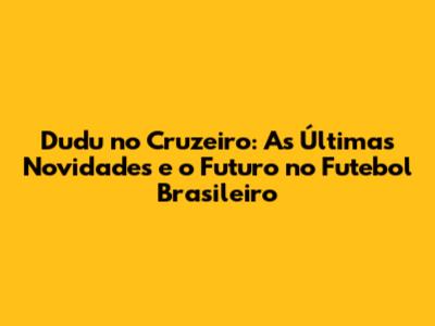 As Últimas Notícias Sobre Dudu e o Cruzeiro
