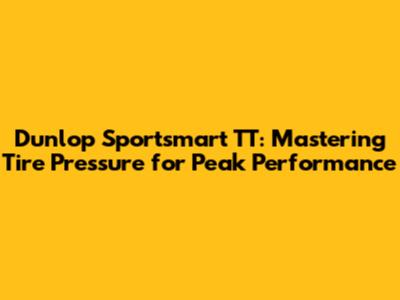 Dunlop Sportsmart TT: Mastering Tire Pressure For Peak Performance