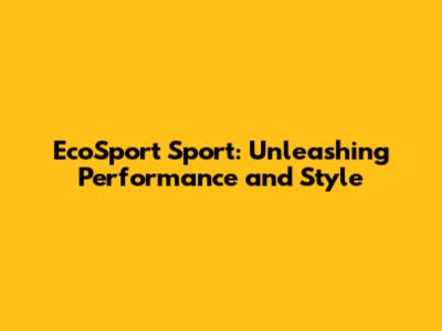 EcoSport Sport: Your Guide To Performance And Style