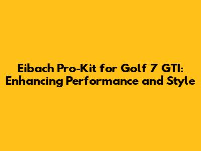 Eibach Pro-Kit For Golf 7 GTI: Ultimate Guide