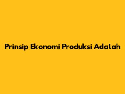 Apa Itu Prinsip Ekonomi Produksi?
