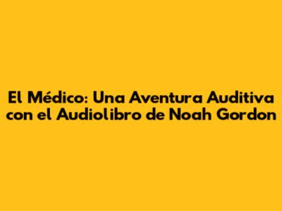 El Médico: Sumérgete En El Audiolibro De Noah Gordon